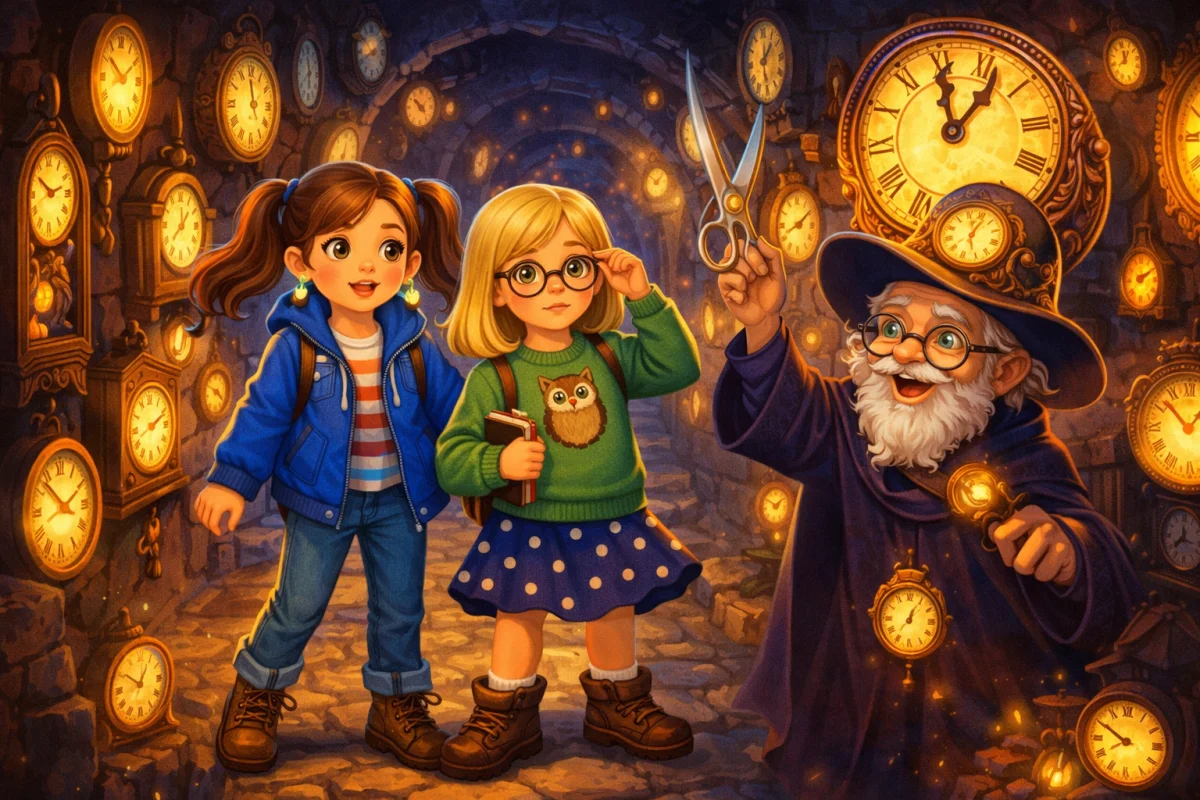 — Да! — Мастер Времени махнул ножницами. — Время остановилось, потому что кто-то украл Главные Стрелки — те, что управляют всеми часами в замке. Без них всё застыло. Даже пирожные перестали пахнуть. А вы… вы можете их найти!